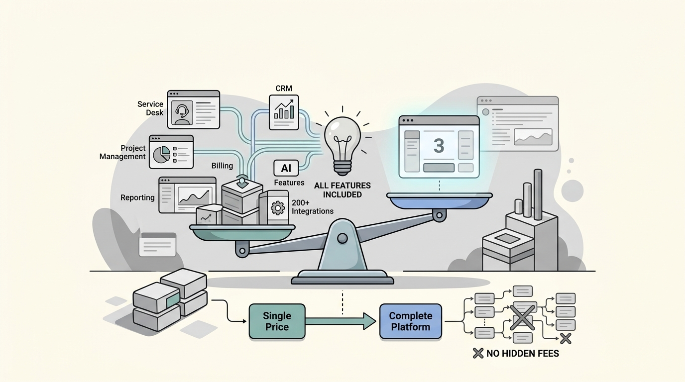 HaloPSA's all-inclusive model stands in contrast to both ConnectWise and Autotask, which use tiered pricing that restricts features on lower plans. With HaloPSA, you know exactly what you pay. With ConnectWise and Autotask, you negotiate and hope you guessed your needs correctly.